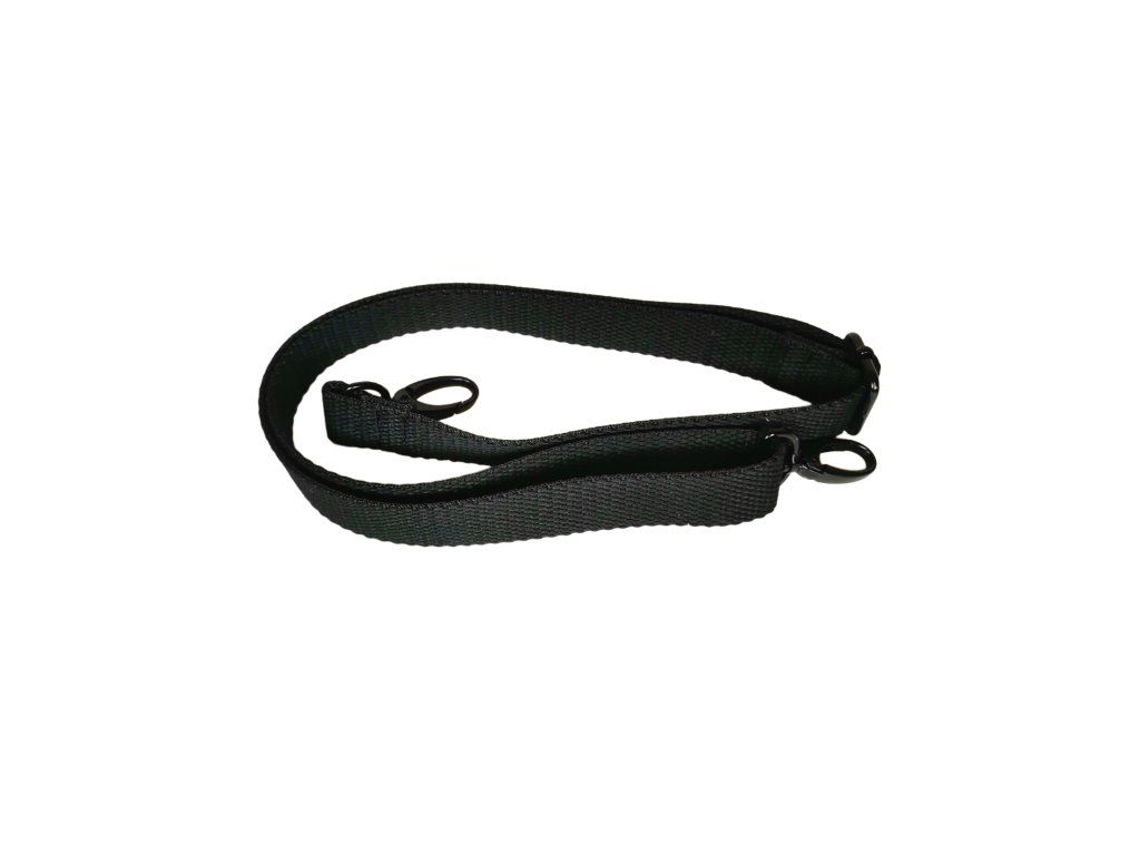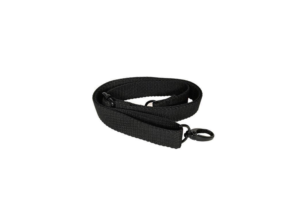 Černý bavlněný popruh o délce 120cm a šířce 2,5cm. Karabinky jsou černé, popruh má posuvku, délka je nastavitelná.